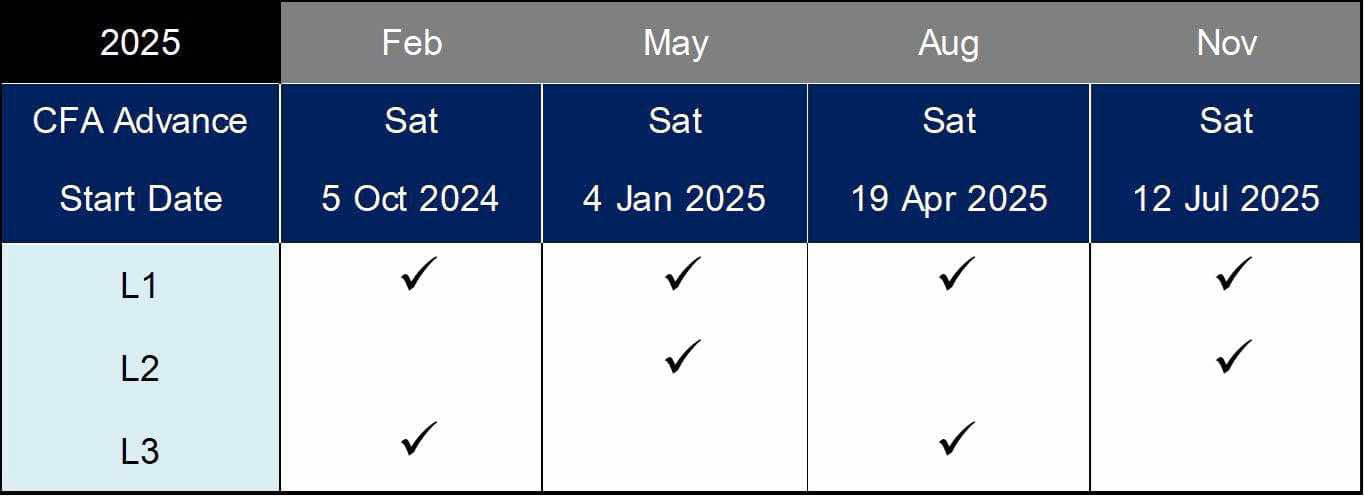 หลักสูตรนี้ เป็นหลักสูตรการเงินขั้นสูง ระยะเวลา 4-6 เดือน ที่จัดขึ้นเพื่อเตรียมพร้อมผู้เรียนให้มีความพร้อมสูงสุดเพื่อเข้าสู่สนามสอบ Chartered Financial Analyst (CFA) ทั้ง 3 ระดับเป็นครั้งแรกโดยเฉพาะ โดยผู้เรียนจะต้องเริ่มต้นเรียนที่ CFA ระดับที่ 1 และต้องสอบ CFA ให้ผ่านไปทีละระดับ จึงจะมีสิทธิ์เข้าเรียนในระดับต่อไปได้ นอกจากนี้นักเรียนทุกคนจะต้องเป็นผู้ที่สมัครสอบ และ สมัครเรียนให้ตรงกับรอบการสอบของตัวเองเท่านั้น